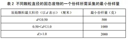 4.1.3 固體廢物為 GB 34330 所規(guī)定的喪失原有使用價值的物質(zhì)時,每類物質(zhì)作為一類固體廢物,分別采樣鑒別。采樣應(yīng)滿足以下要求: a) 如危險特性全部來源于該物質(zhì)本身,且在使用過程中危險特性不變或降低,應(yīng)采集該物質(zhì)未使用前的樣品。 b) 如危險特性全部或部分來源于使用過程,應(yīng)在該物質(zhì)不能繼續(xù)按照原有設(shè)計用途使用時采樣。 4.1.4 固體廢物為 GB 34330 所規(guī)定的生產(chǎn)過程(含固體廢物利用、處置過程)中產(chǎn)生的副產(chǎn)物,應(yīng)根據(jù)產(chǎn)生工藝節(jié)點確定固體廢物類別,每類固體廢物分別采樣鑒別。采樣應(yīng)滿足以下要求: a) 應(yīng)在該固體廢物從正常生產(chǎn)工藝或利用工藝中分離出來的工藝環(huán)節(jié)采樣。 b) 應(yīng)在生產(chǎn)設(shè)施、設(shè)備、原輔材料和生產(chǎn)負荷穩(wěn)定的生產(chǎn)期采樣。 4.1.5 固體廢物為 GB 34330 所規(guī)定的環(huán)境治理和污染控制過程中產(chǎn)生的物質(zhì),應(yīng)在污染控制設(shè)施污染物來源、設(shè)施運行負荷和效果穩(wěn)定的生產(chǎn)期采樣;應(yīng)根據(jù)環(huán)境治理和污染控制工藝流程,對不同工藝環(huán)節(jié)產(chǎn)生的固體廢物分別進行采樣。 4.1.6 堆存狀態(tài)的固體廢物,采樣應(yīng)滿足以下要求: a) 如其產(chǎn)生過程尚未終止,應(yīng)按 4.1.2~4.1.5 采集原產(chǎn)生工藝樣品。 b) 如其產(chǎn)生過程已經(jīng)終止,則采集堆存的固體廢物。 c) 環(huán)境事件涉及的固體廢物,按本標準第 8 章相關(guān)要求采樣。 4.1.7 固體廢物為生產(chǎn)和服務(wù)設(shè)施更換或拆除的固定式容器、反應(yīng)容器和管道,粉狀、半固態(tài)、液體產(chǎn)品使用后產(chǎn)生的包裝物或容器,以及產(chǎn)品維修或產(chǎn)品類廢物拆解過程產(chǎn)生的粉狀、半固態(tài)、液體物料的盛裝容器,采樣對象應(yīng)為容器中的內(nèi)容物,每類內(nèi)容物作為一類固體廢物,分別采樣。 4.1.8 水體環(huán)境、污染地塊治理與修復(fù)過程產(chǎn)生的,需要按固體廢物進行處理處置的水體沉積物及污染土壤等環(huán)境介質(zhì),應(yīng)盡可能在未發(fā)生二次擾動的情況下,根據(jù)水體、污染地塊污染物的擴散特征和環(huán)境調(diào)查結(jié)果,對不同污染程度的環(huán)境介質(zhì)進行分類采樣。 4.1.9 需要開展危險廢物鑒別的建筑廢物,應(yīng)盡可能在拆除、清理之前或過程中,根據(jù)建筑物的組成和污染特性進行分類,分別采樣。 4.2 份樣數(shù)的確定 4.2.1 危險廢物鑒別需根據(jù)待鑒別固體廢物的質(zhì)量確定采樣份樣數(shù)(第 4.2.4 條所列情形除外),表 1為需要采集的固體廢物的最小份樣數(shù)。 4.2.2 堆存狀態(tài)的固體廢物,應(yīng)以堆存的固體廢物總量為依據(jù),按照表 1 確定需要采集的最小份樣數(shù)。 4.2.3 生產(chǎn)工藝過程中產(chǎn)生的固體廢物,以生產(chǎn)設(shè)施自試生產(chǎn)以來的實際最大生產(chǎn)負荷時的固體廢物產(chǎn)生量為依據(jù),按照表 1 確定需要采集的最小份樣數(shù)。滿足第 4.1.2 條規(guī)定的固體廢物,以固體廢物產(chǎn)生量最大的單條生產(chǎn)線最大產(chǎn)生量為依據(jù),按照表 1 確定需要采集的最小份樣數(shù)。固體廢物產(chǎn)生量根據(jù)以下方法確定: a) 連續(xù)產(chǎn)生固體廢物時,以確定的工藝環(huán)節(jié)一個月內(nèi)的固體廢物產(chǎn)生量為依據(jù),按照表 1 確定需要采集的最小份樣數(shù)。如果連續(xù)產(chǎn)生時段小于一個月,則以一個產(chǎn)生時段內(nèi)的固體廢物產(chǎn)生量為依據(jù)。 b) 間歇產(chǎn)生固體廢物時,如固體廢物產(chǎn)生的時間間隔小于或等于一個月,應(yīng)以確定的工藝環(huán)節(jié)一個月內(nèi)的固體廢物最大產(chǎn)生量為依據(jù),按照表 1 確定需要采集的最小份樣數(shù)。如固體廢物產(chǎn)生的時間間隔大于一個月,以每次產(chǎn)生的固體廢物總量為依據(jù),按照表 1 確定需要采集的最小份樣數(shù)。 4.2.4 以下情形固體廢物的危險特性鑒別可以不根據(jù)固體廢物的產(chǎn)生量確定采樣份樣數(shù): a) 鑒別樣品為本標準第 4.1.3 條 a)例所規(guī)定的物質(zhì),可適當(dāng)減少采樣份樣數(shù),份樣數(shù)不少于2 個。固體廢物為 4.1.7 條所規(guī)定的廢棄包裝物、容器時,內(nèi)容物的采樣參照本條執(zhí)行。 b) 固體廢物為廢水處理污泥,如廢水處理設(shè)施的廢水的來源、類別、排放量、污染物含量穩(wěn)定,可適當(dāng)減少采樣份樣數(shù),份樣數(shù)不少于 5 個。 c) 固體廢物來源于連續(xù)生產(chǎn)工藝,且設(shè)施長期運行穩(wěn)定、原輔材料類別和來源固定,可適當(dāng)減少采樣份樣數(shù),份樣數(shù)不少于 5 個。 d) 貯存于貯存池、不可移動大型容器、槽罐車內(nèi)的液態(tài)廢物,可適當(dāng)減少采樣份樣數(shù)。敞口貯存池和不可移動大型容器內(nèi)液態(tài)廢物采樣份樣數(shù)不少于 5 個;封閉式貯存池、不可移動大型容器和槽罐車,如不具備在卸除廢物過程中采樣,采樣份樣數(shù)不少于 2 個。 e) 貯存于可移動的小型容器(容積≤1000L)中的固體廢物,當(dāng)容器數(shù)量少于根據(jù)表 1 所確定的最小份樣數(shù)時,可適當(dāng)減少采樣份樣數(shù),每個容器采集 1